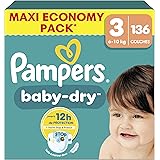 11,99 € (as of 22 décembre 2025 09:48 GMT +00:00 - Plus d’infosProduct prices and availability are accurate as of the date/time indicated and are subject to change. Any price and availability information displayed on [relevant Amazon Site(s), as applicable] at the time of purchase will apply to the purchase of this product.)Pampers Baby-Dry Taille 3, 136 Couches, 6kg-10kg, Une Nuit Confortable Jusqu’À 100% Sans Fuites